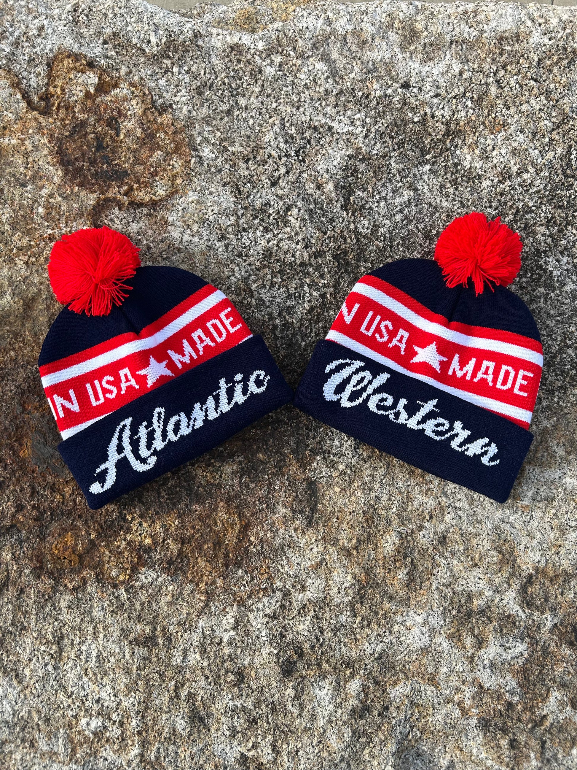 Crafted with pride in New Jersey, the Red, White, and Blue Jacquard Sport Beanies are old-school ski beanies. Available in Atlantic or Western models with a Red Pom, they're substantial while still comfy and cozy. Just add snow and away you go!